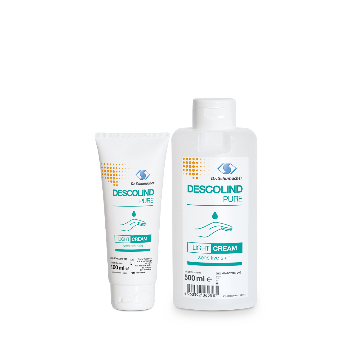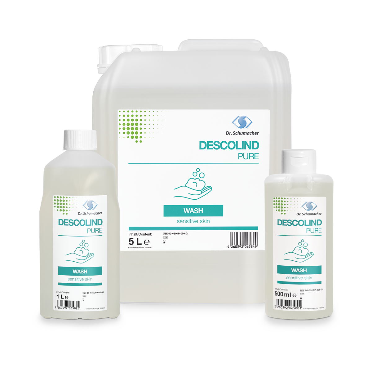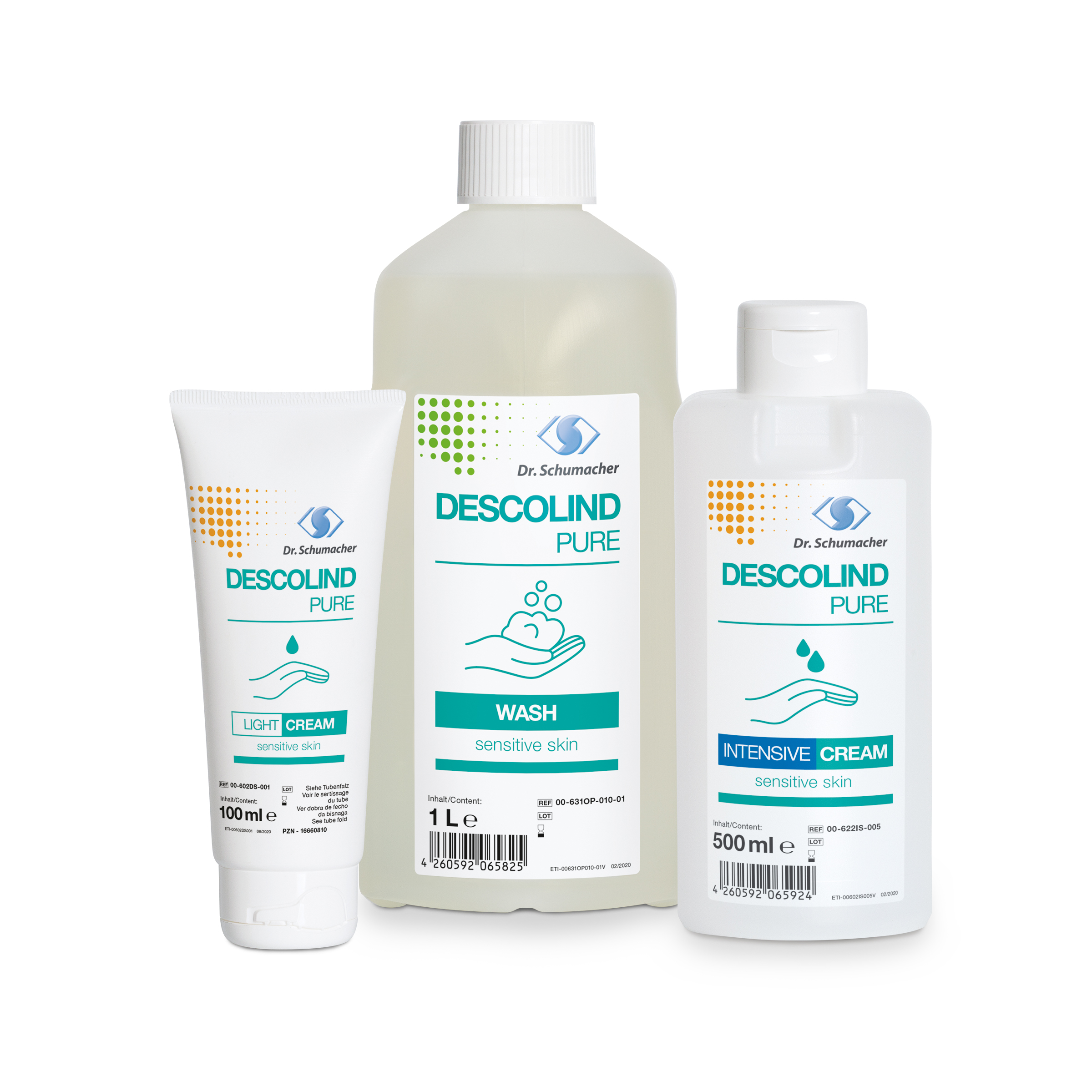 Clear: The DESCOLIND PURE range does not contain any perfumes or colorants. The wash lotions contain extra-mild surfactants. The care products contain effective humectants and high-quality lipids. Users can choose between emulsion types with different levels of moisturizers.
