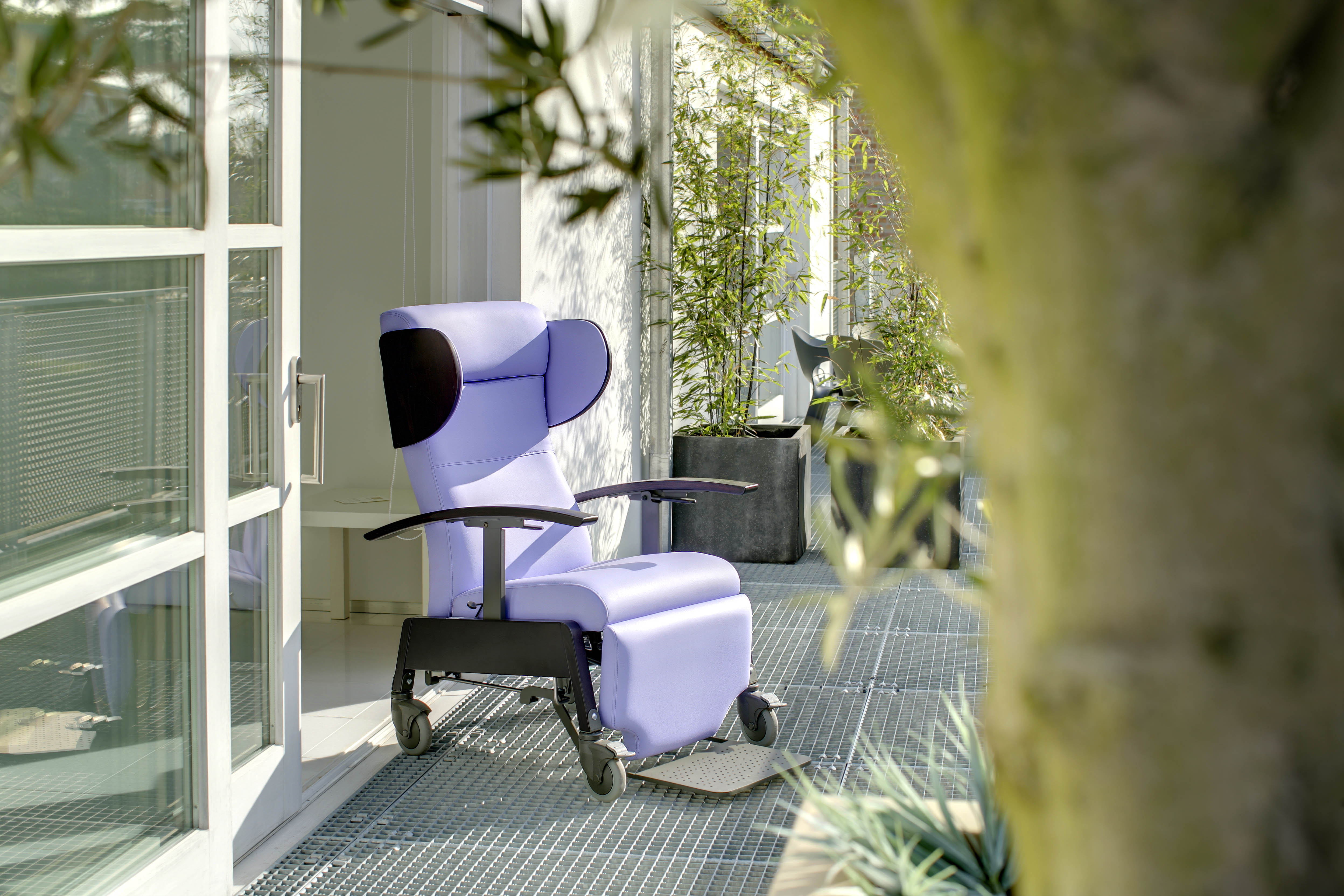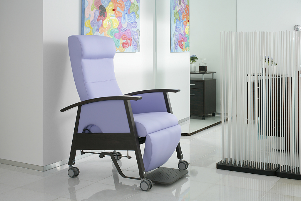 Geriatric reclining chair with high-end finish. The ergonomic back ensures the recliner is very comfortable; ideal when sitting for a long time and for older people with relatively demanding needs.