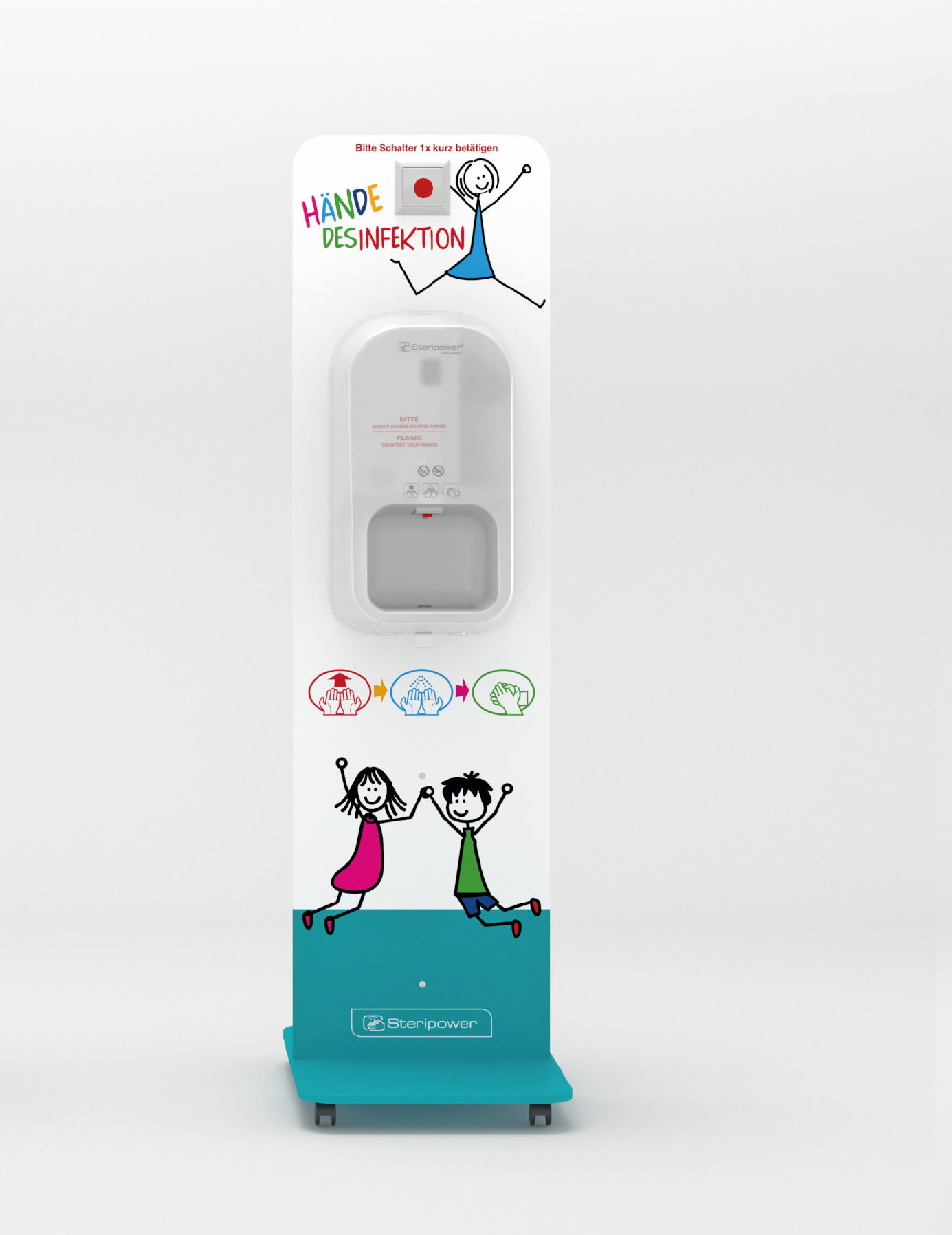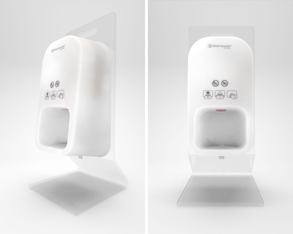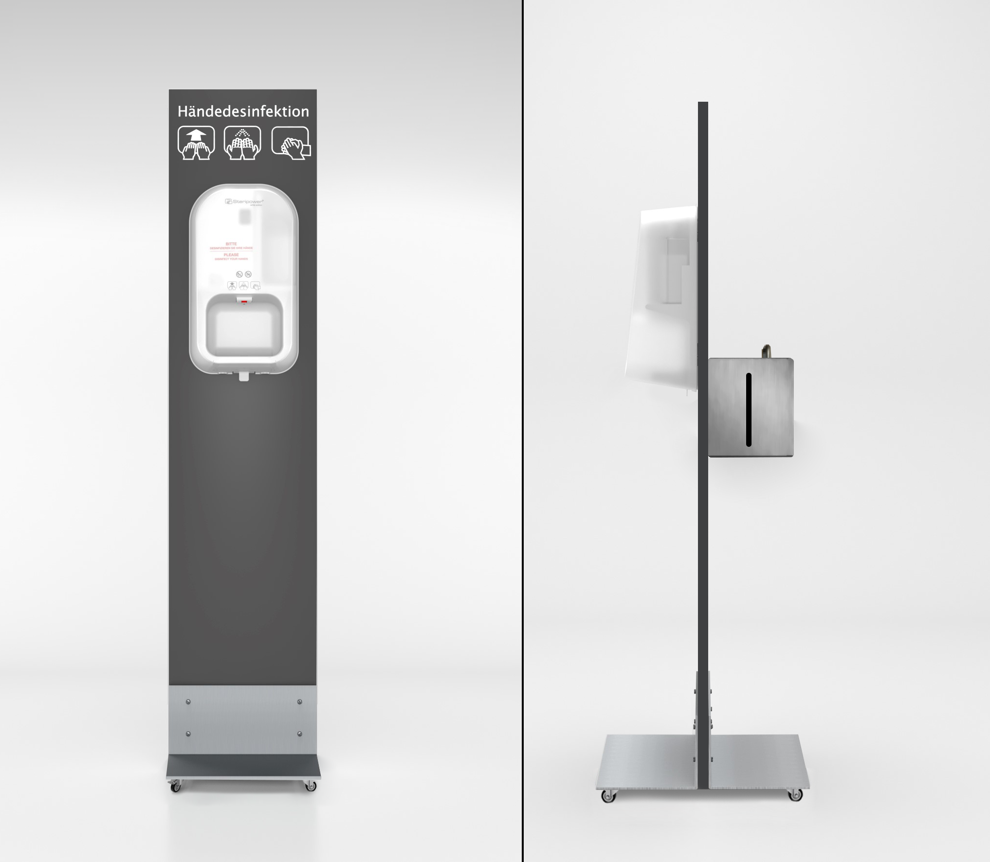Steripower offers a wide range of stand systems to mount or to carry your touchless hand desinfection units.