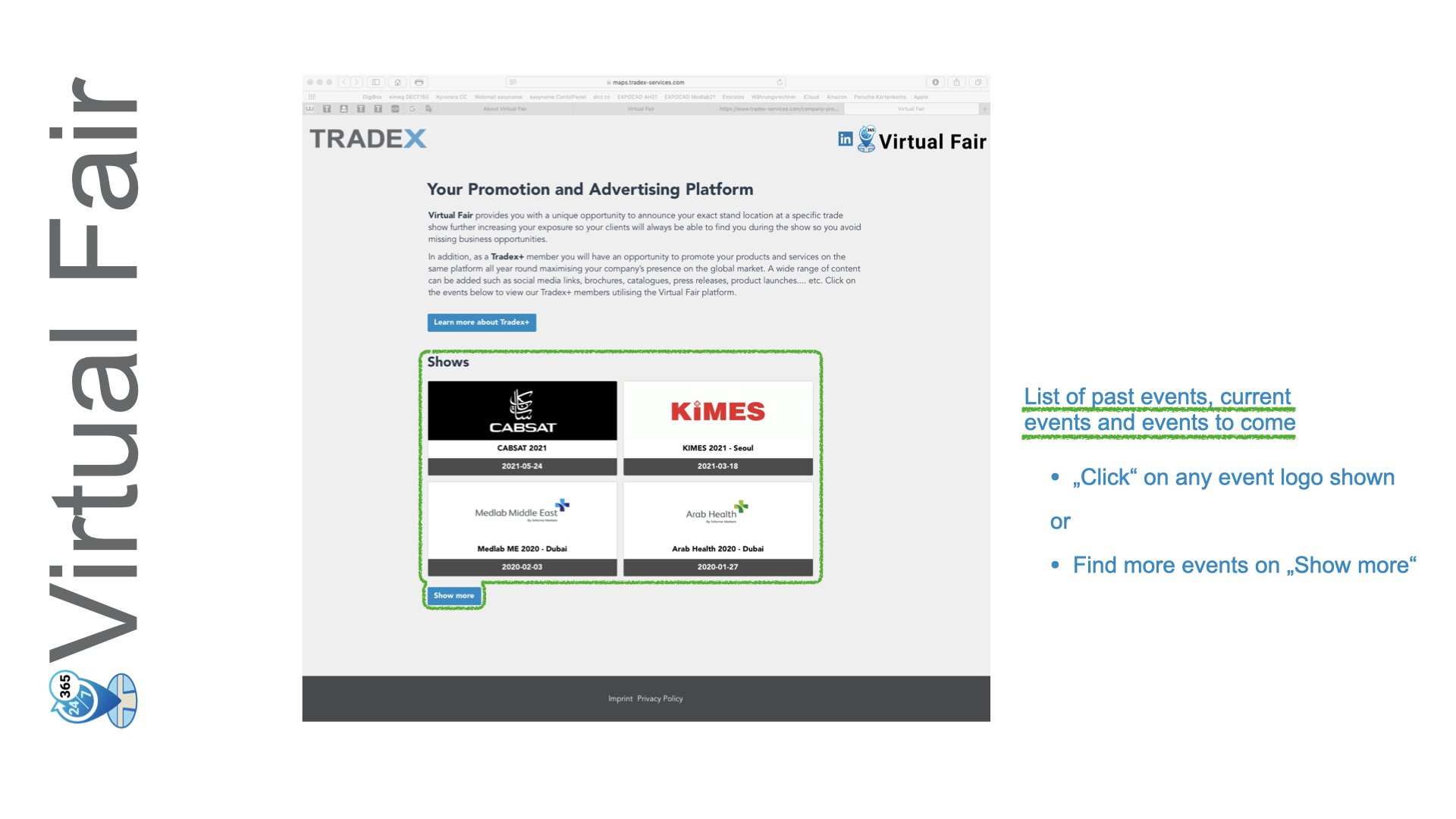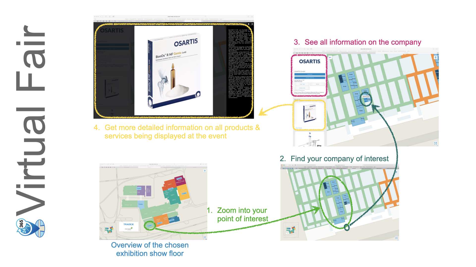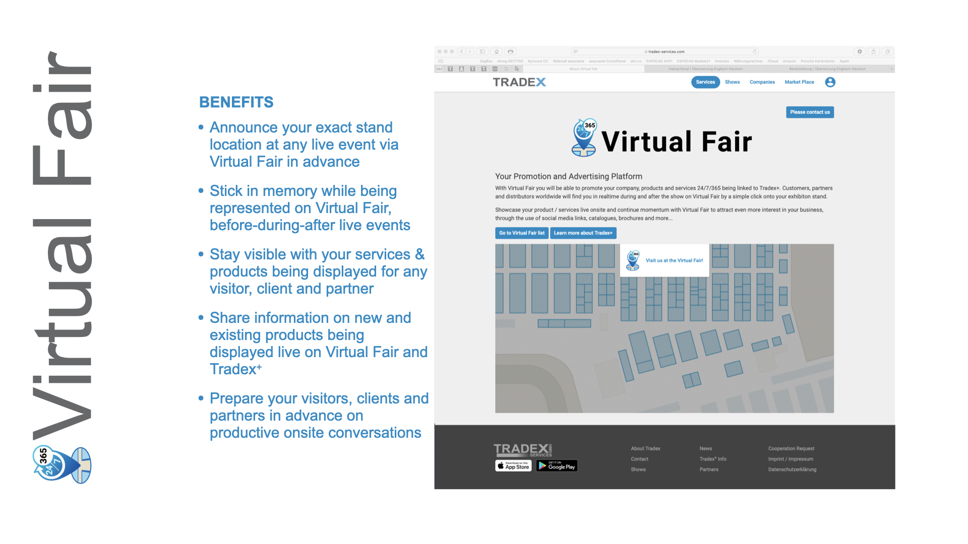 Virtual Fair provides you with a unique opportunity to announce your exact stand location at a specific trade show further increasing your exposure so your clients will always be able to find you during the show so you avoid missing business opportunities.