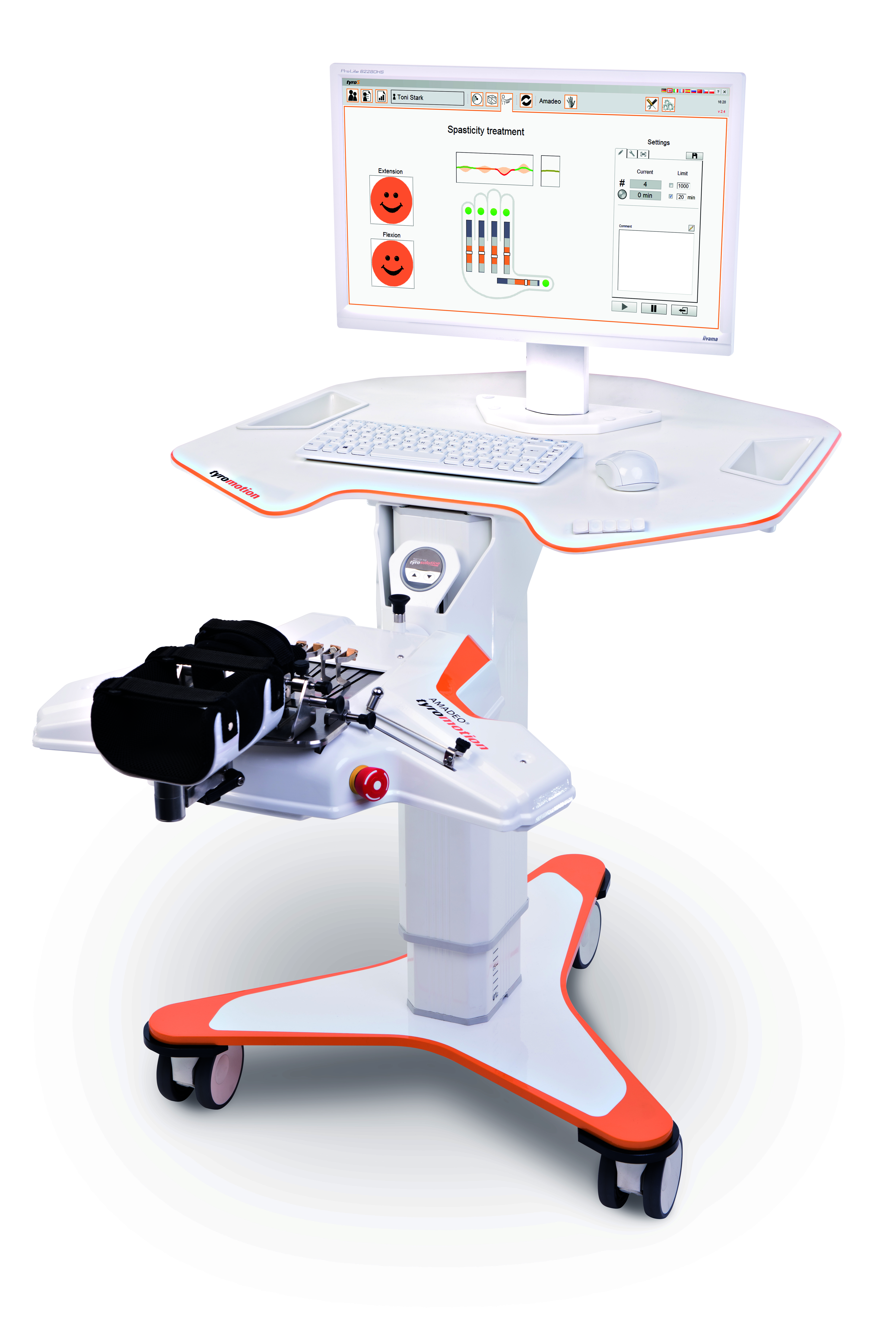 Boredom with finger-hand rehabilitation? Not with AMADEO®! Motivation in the course of therapy is just as essential as fingers and hands are for daily life. Regardless of whether it is an adult or child, AMADEO® increases therapeutic ambition with sophisticated software and robotics. Utilizing a playful gamification approach, AMADEO® visualizes and records the smallest successes in all phases of rehabilitation. AMADEO® is simply unique.