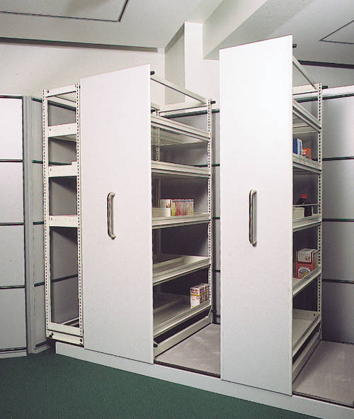 • Small footprint and very high storage density, as only one aisle is ever open at a time