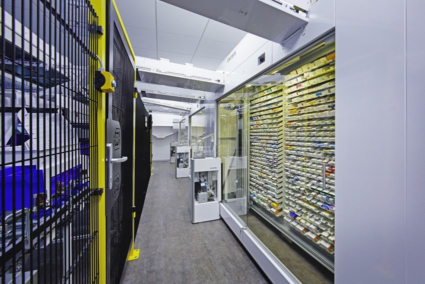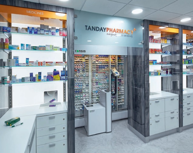 The solution model described here is based on the 80/20 principle and is particularly suited for pharmacy concepts in which the optimum cost-benefit ratio is of the greatest importance. The heart of the pharmacy concept described here is the Consis B robotic dispenser which stores the fast moving medicine packages accounting for approximately 80% of the packages dispensed on a daily basis.