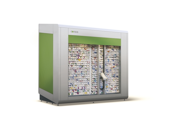 - Automates up to 85% of the packages a pharmacy dispenses on a daily basis on a footprint of only 3.3m² (Consis B2)