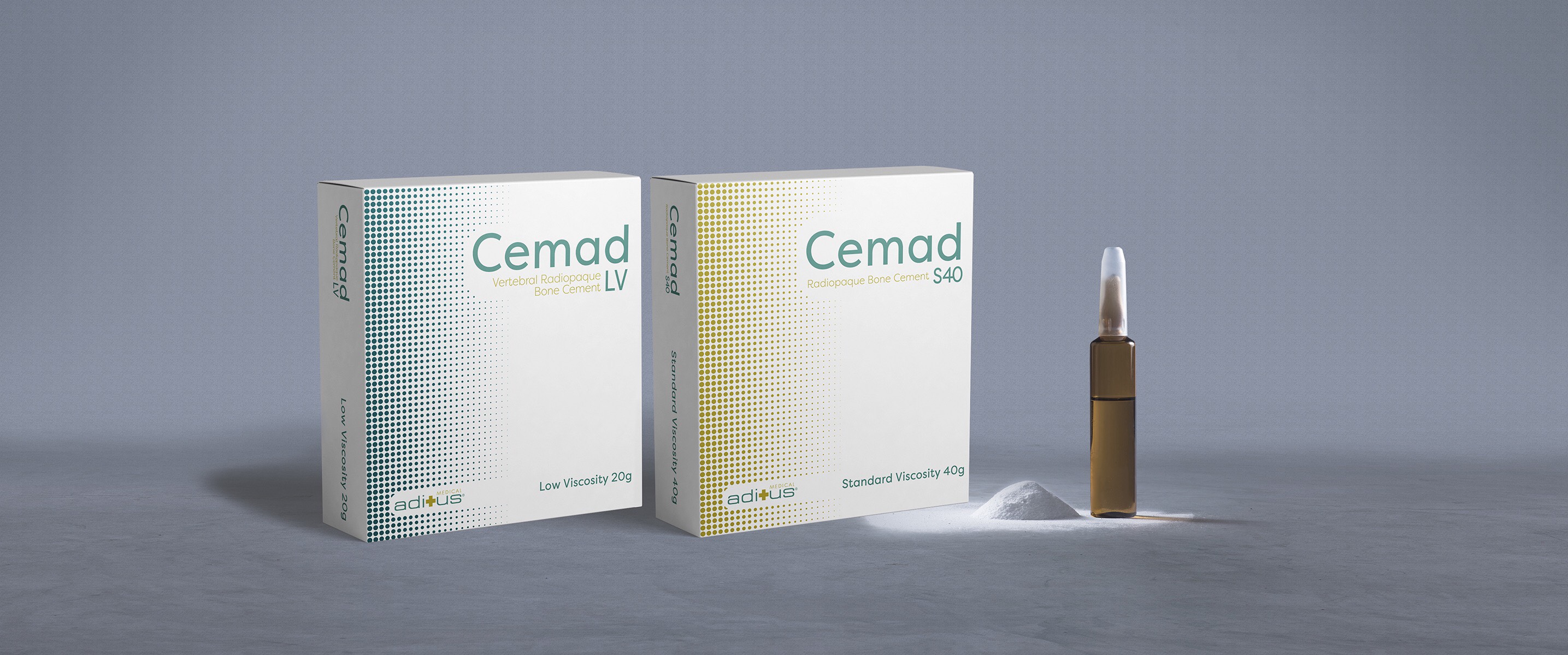 Cemad is a radiopaque, low viscosity and acrylic based (Polymethylmethacrylate) bone cement. It contains a pouch with radiopaque powder sterilized by ethylene oxide and an ampoule with liquid sterilized by filtration.