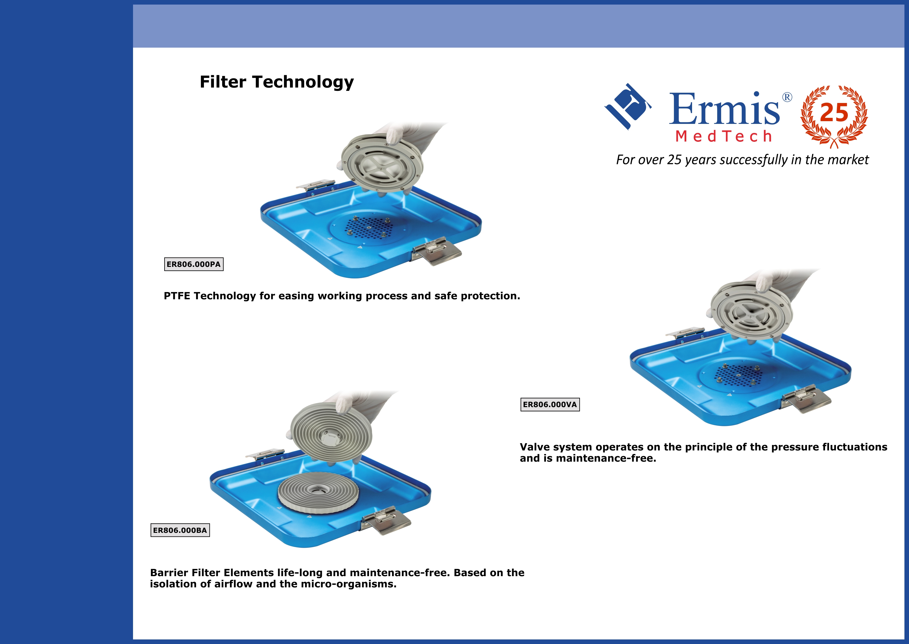 3 - In - 1 Aluminium Model: Sterilization container with 3 different interchangeable aluminium cassetes for: PTFE Filter; Barriere-system and Valve-system.