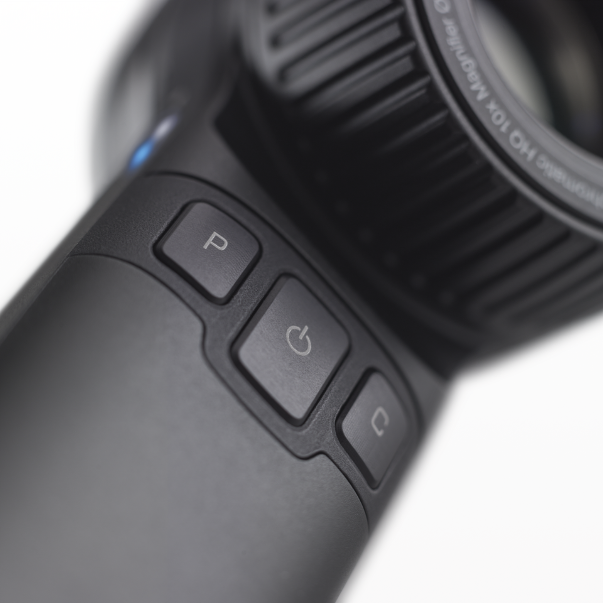 HEINE diSTANCE working ring: The stable working ring enables the user to examine and manage a lesion under magnification by maintaining a constant distance between the skin and the dermatoscope without contact. (optional)