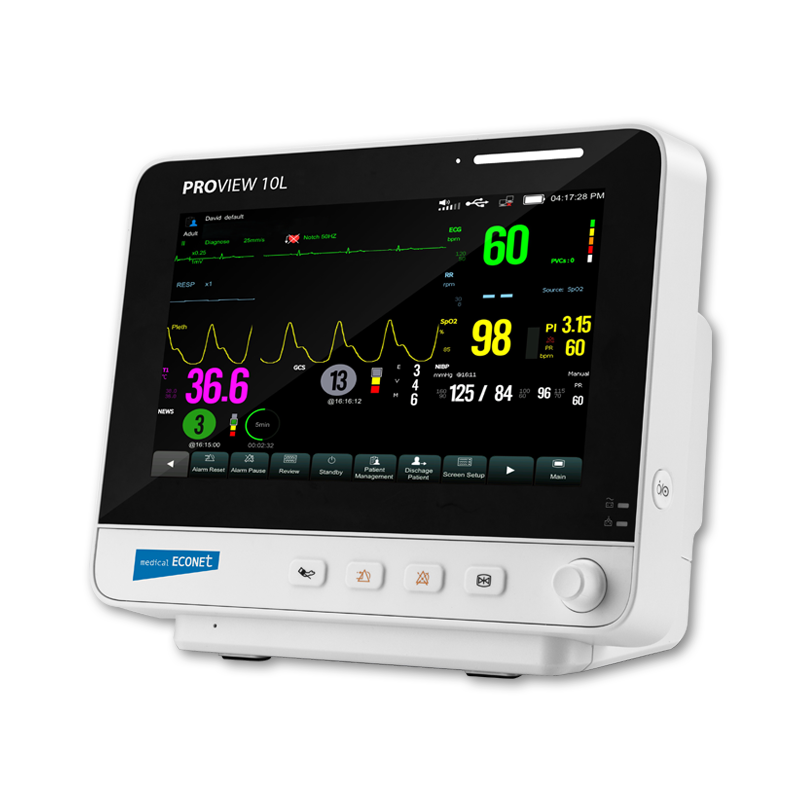 • 3/5/6-channel ECG, HR, Resp, SpO2, PI, RR(from Pleth),NIBP, Temperature • Concealed handle and accessory storage • Automatic brightness adjustment to ambient light • EWS (Early Warning Scoring), GCS (Glasgow Coma Scale), PPV (pulse pressure variation) • oxyCRG - Oxygen cardio-respirogram • Central Monitoring Station for up to 66 monitors (optional) • 4 hours battery capacity / up to 8 hours (optional)