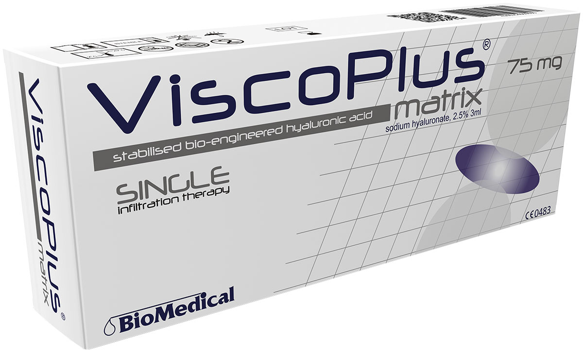 ViscoPlus® Matrix 2,5% 3 ml sodium hyaluronate is a bio-engineered high molecular matrix of fermentative hyaluronic acid for long time solution in just single infiltration.