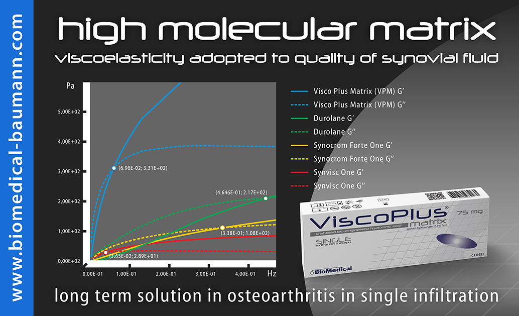 - high viscoelasticity of ViscoPlus® Matrix is adopted to endogenous synovial fluid quality (!)