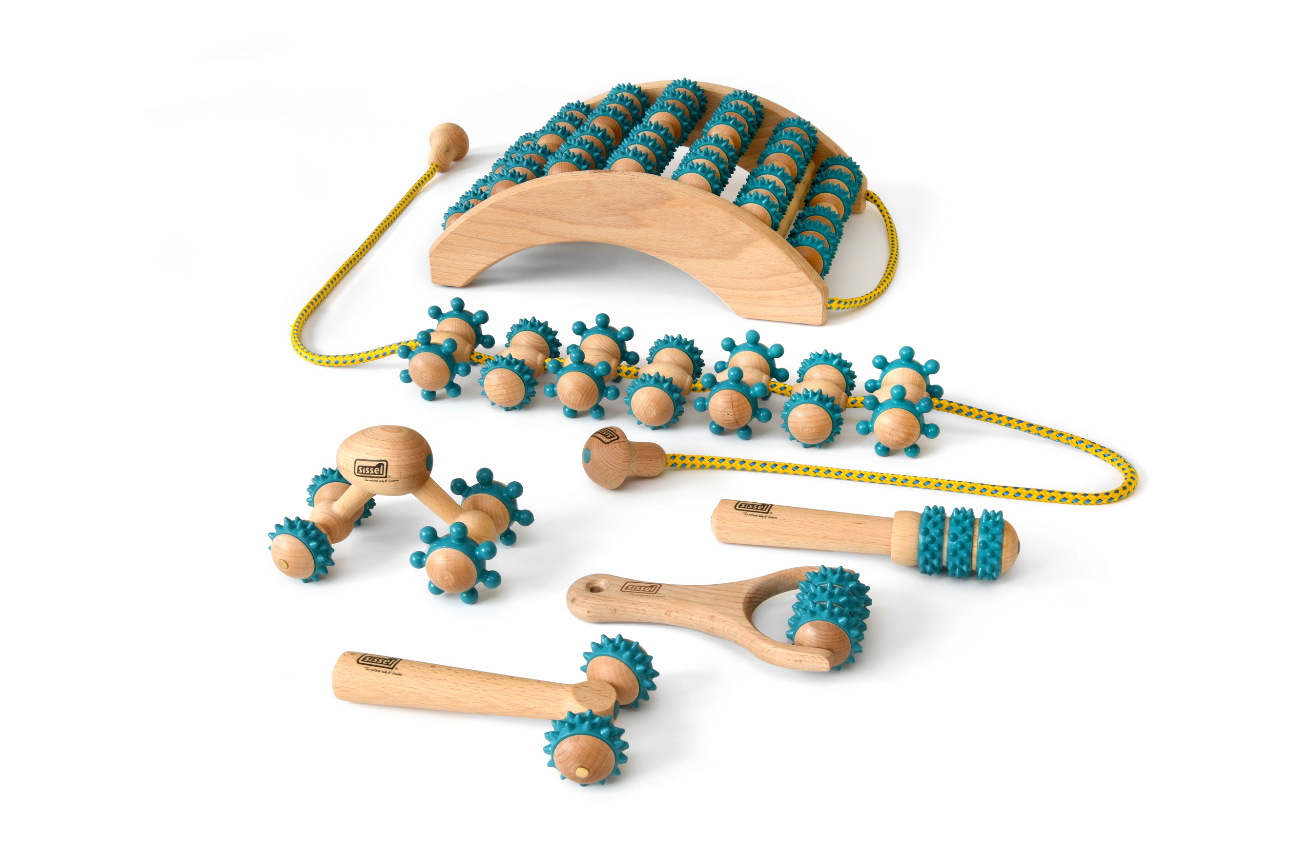 wood parts: beech | massage heads: PVC, rope: polyester