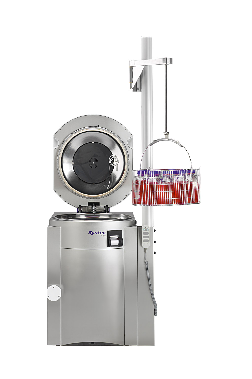 The Systec V-Series of top-loading vertical autoclaves in 8 different sizes with 40 to 150 liters chamber volume is distinguished by its small footprint and high chamber capacity. Result: optimal loading capacity with most standard media bottles and Erlenmeyer flasks.