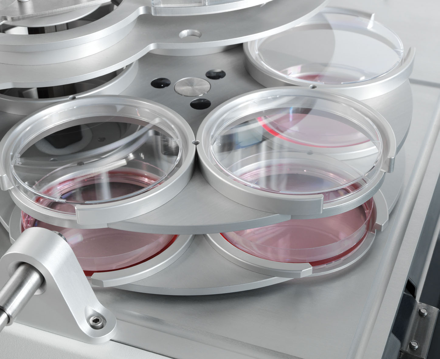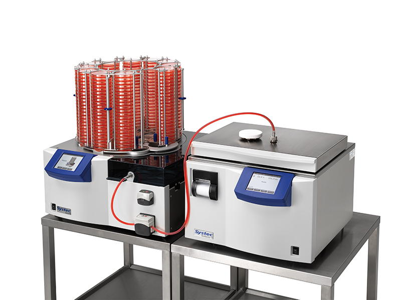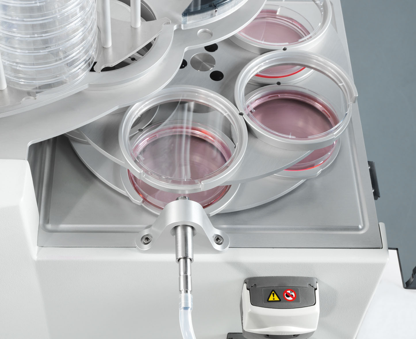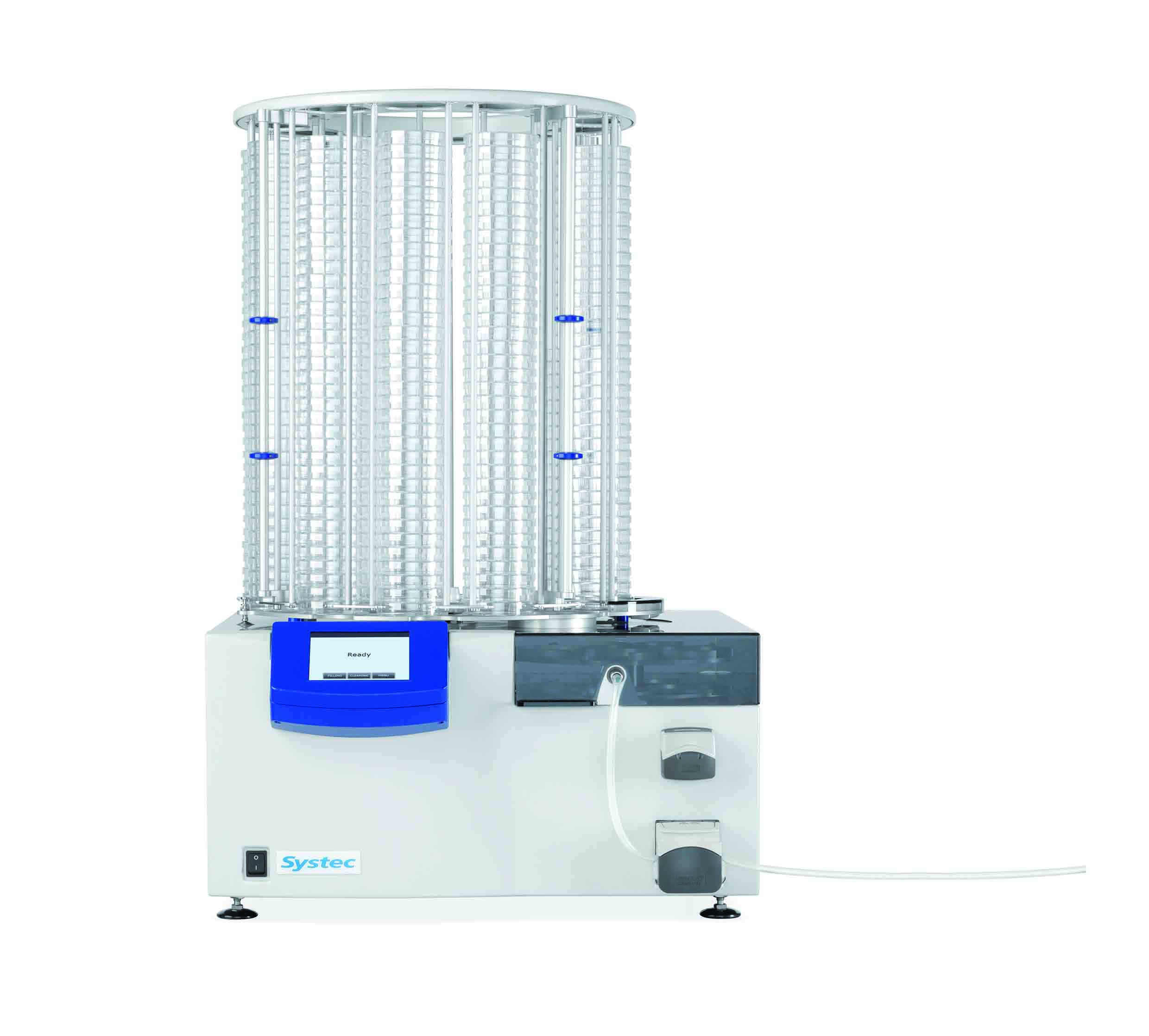 A dispensing and pouring system for automated dosing and filling of microbiological culture media in petri dishes with diameters of 35, 60, 70 and 90 mm, as well as for Bi-plates and Tri-plates and for the automatic metering of liquid media into test tubes. Depending on requirements, there are three carousel sizes for 220, 440 or 660 Petri dishes. The system is simple and intuitive to operate. For example, the dimensions of the Petri dishes being used can be called up from the database via the 5.7″ display. Sterile automatic dispensing is performed precisely via an integrated peristaltic pump. Having a range of options, the Systec Mediafill can be configured ideally for the most diverse of applications.