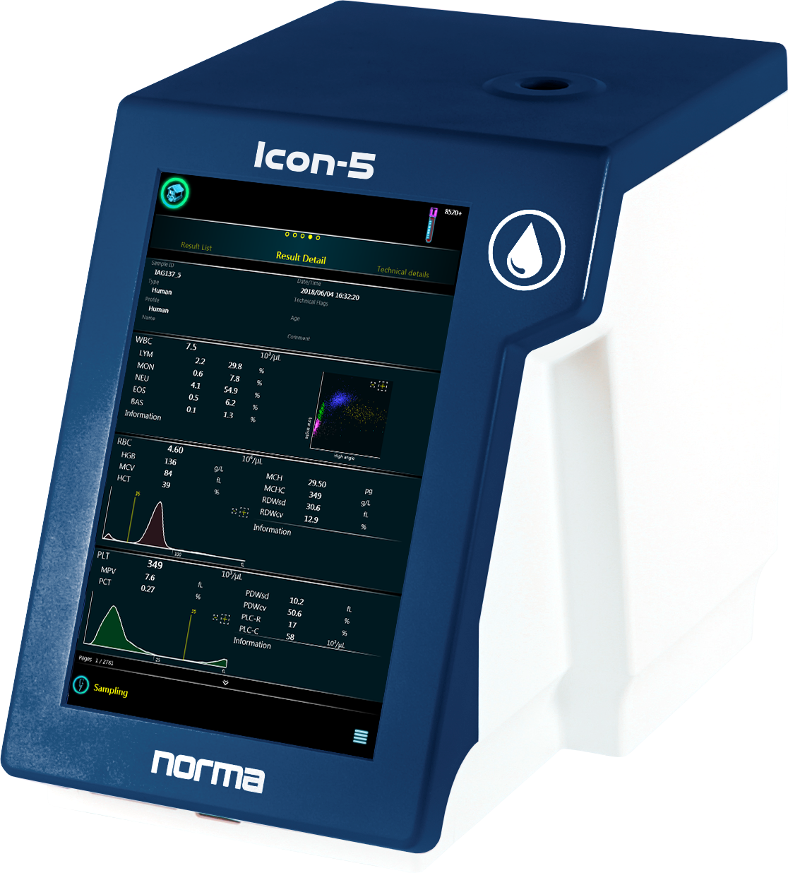 Norma Icon-5, the smallest laser-based 5-diff hematology analyzer with closed vial sampling
