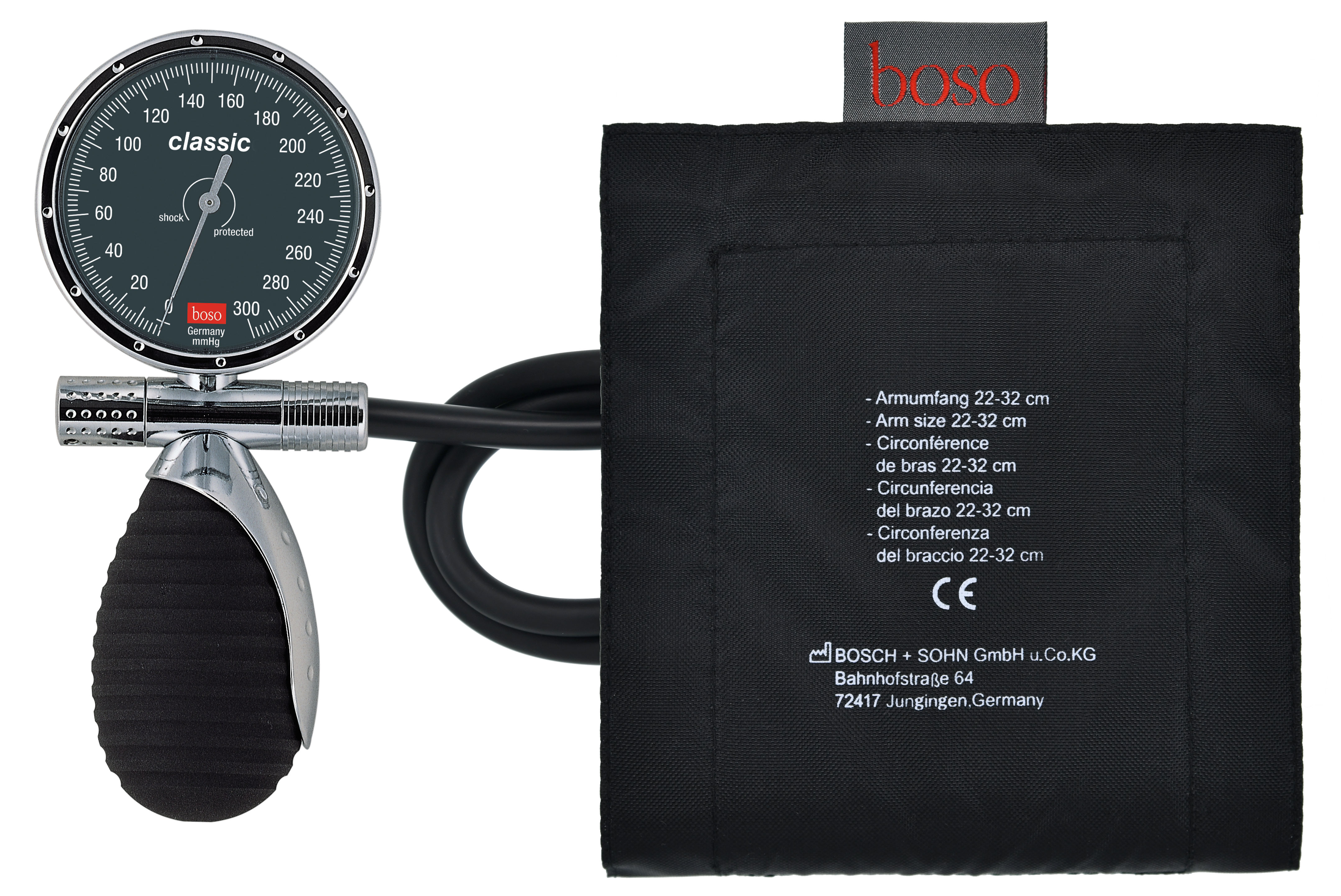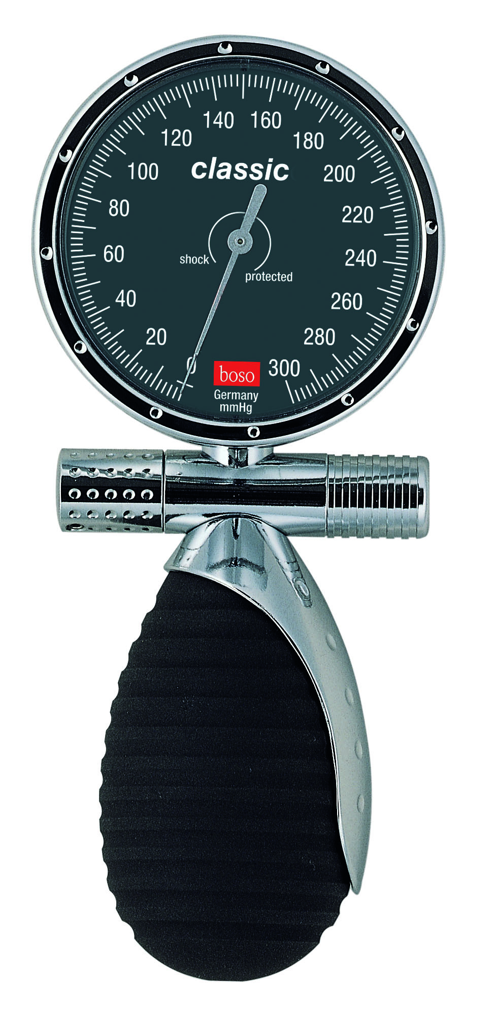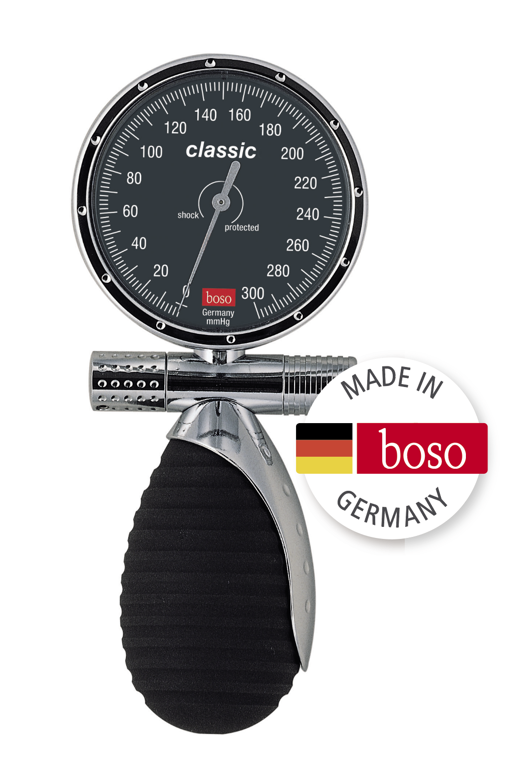 Every manometer is protected against overpressure and equipped with a noncorrosive mechanism, that absorbs even shocks of dropping the instrument. The Physikalisch-Technische Bundesanstalt (the national institute for metrology) tested boso sphygmomanometers and came to an outstanding result for boso’s shock protection-technology. No damage, no complaints, no repairs – perfect safety. Primarily for the daily use in hospitals and doctors’ offices.