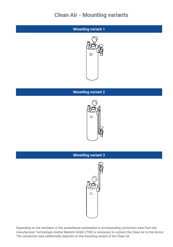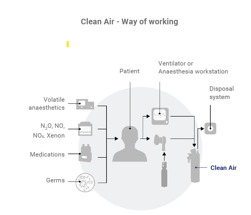 With the "Clean Air" open reservoir scavenging system, the exhaled patient gas is safely disposed of through the vacuum system via the expiratory outlet of the ventilator.