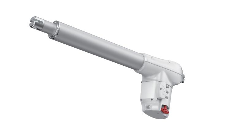 The actuator is backed by an innovative first-failure-proof control PCB, equipped with a microcontroller and status LEDs for real-time monitoring. It includes connection ports for a handset, power supply (PP.120-36), and the option to connect a second actuator, making it versatile and easy to integrate into systems.