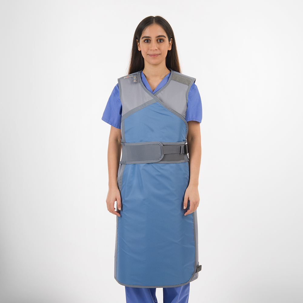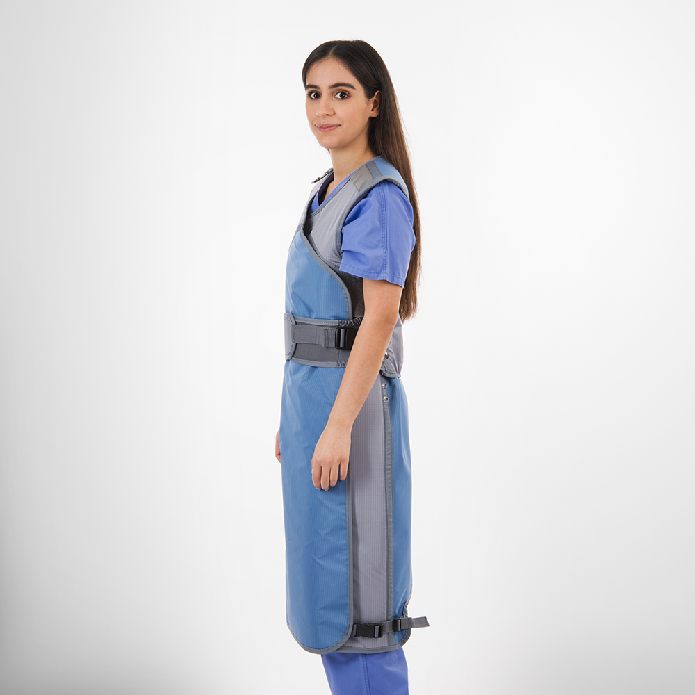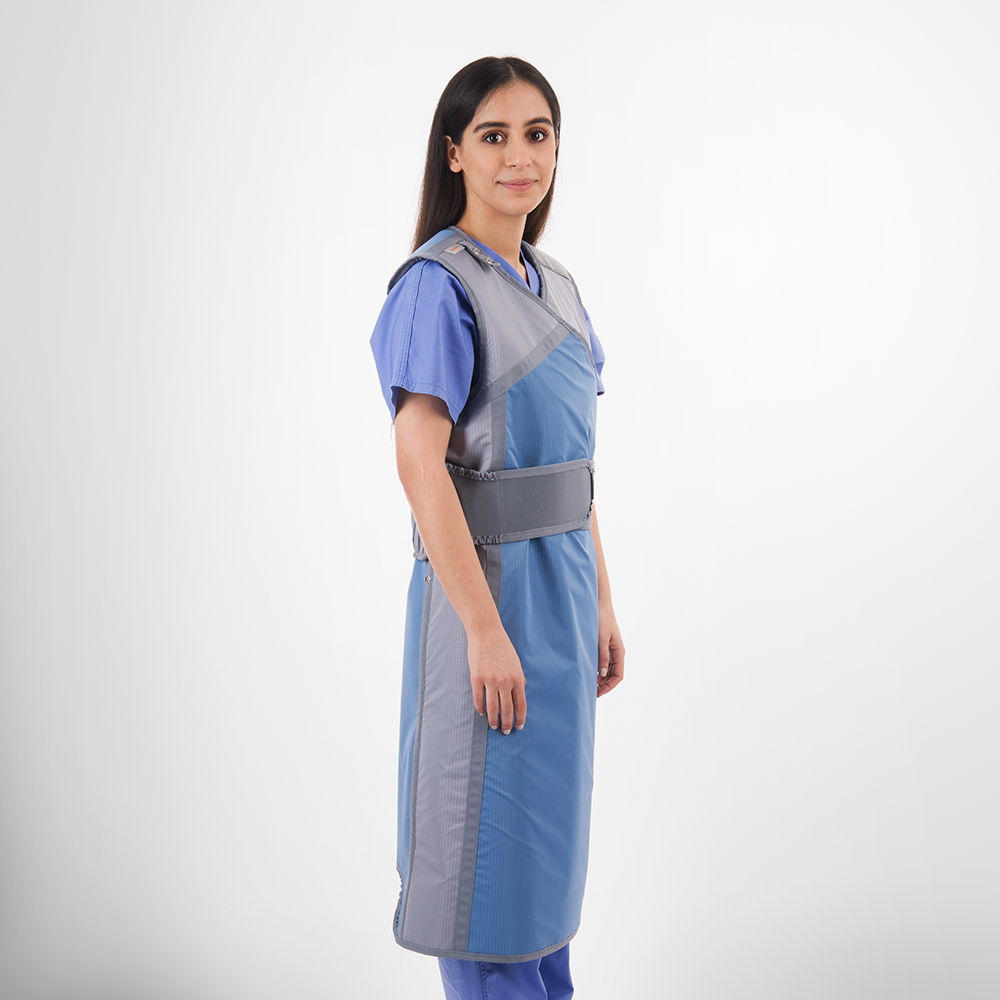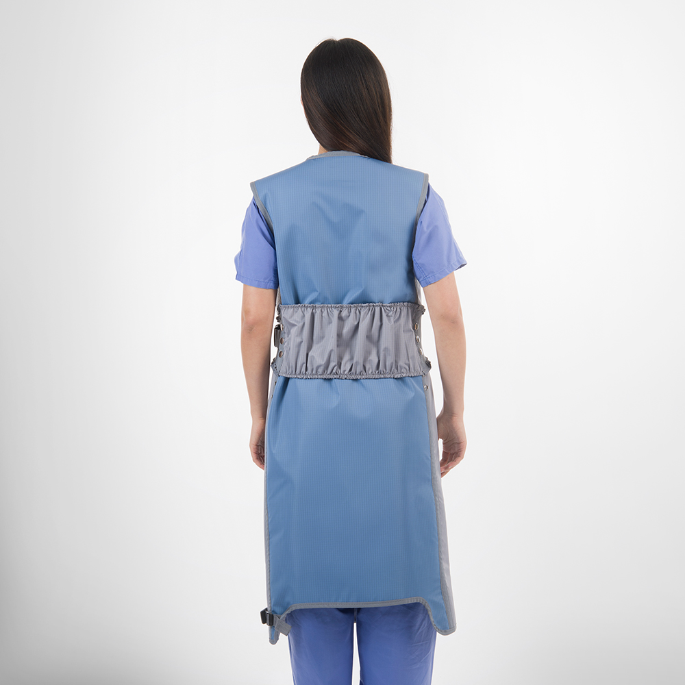 Reduction of the weight burden on the spinal column due the elastic belt Easy to put on due to hook & burr fastener at chest hight Shoulder pads as standard equipment Meets all relevant regulations and requirements Complies with the specifications of DIN EN ISO 13795-1 for surgical textiles Biocompatible, phthalate-free radiation protection materials (lead components can be recycled)