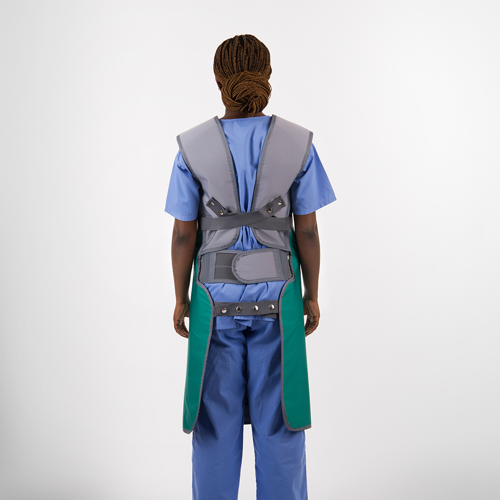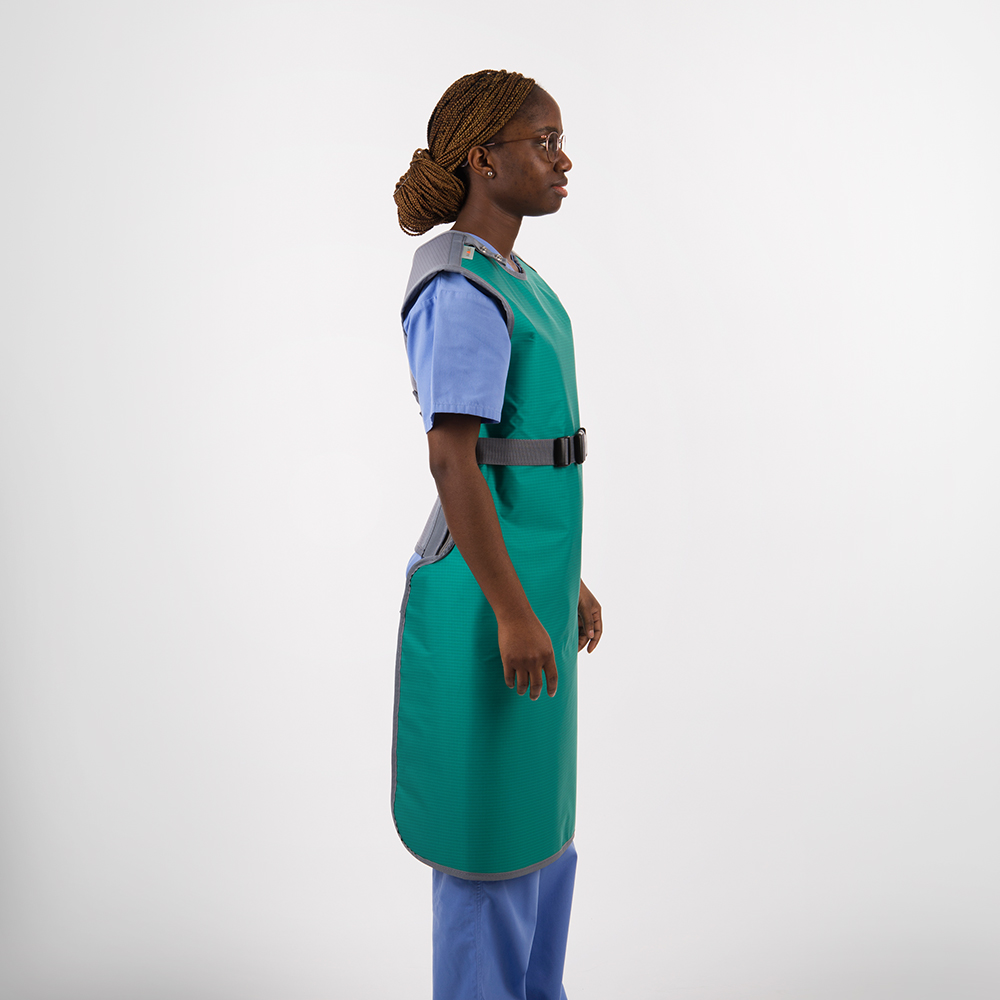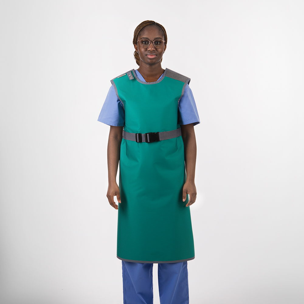 Elastic belt to relieve the weight from the shoulders Removable gonad protection for weight reduction when standing Meets all relevant regulations and requirements Complies with the specifications of DIN EN ISO 13795-1 for surgical textiles Biocompatible, phthalate-free radiation protection materials (lead components can be recycled).