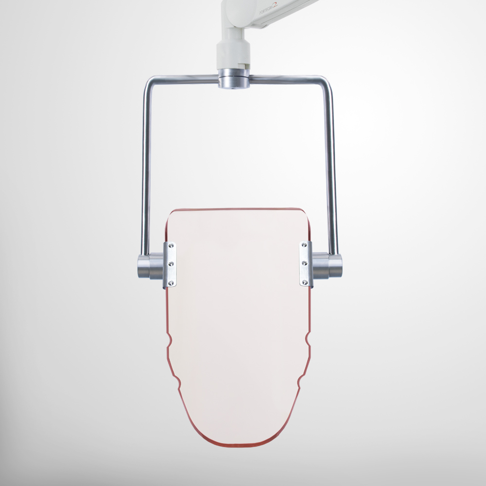 This radiation protective shield is specially optimized to meet the requirements of urological interventions and provides effective radiation protection for the skull of the examiner.