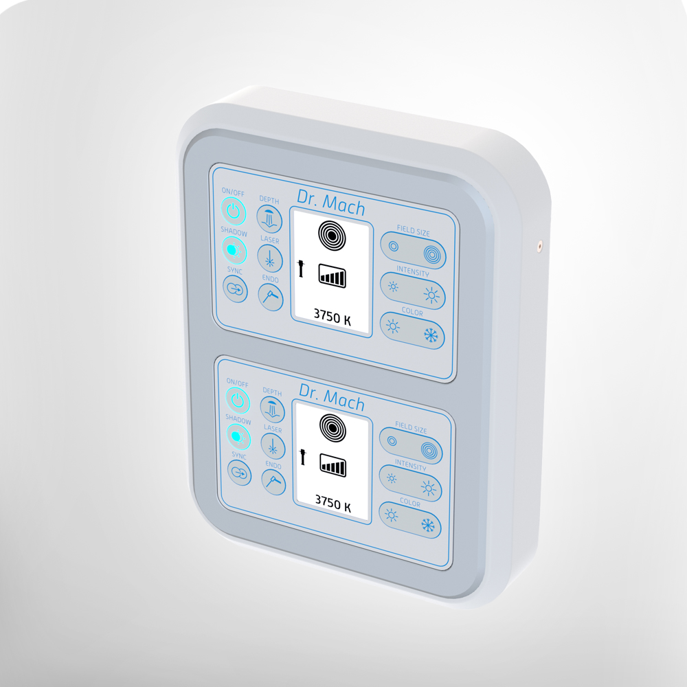 Using the optionally available wall panel, the lamp can also be operated remotely. The LED6 MC is available in 3 versions: 1. Basic version, 2. including laser pointer (L) or 3. including camera preparation and shadow management (KVS).