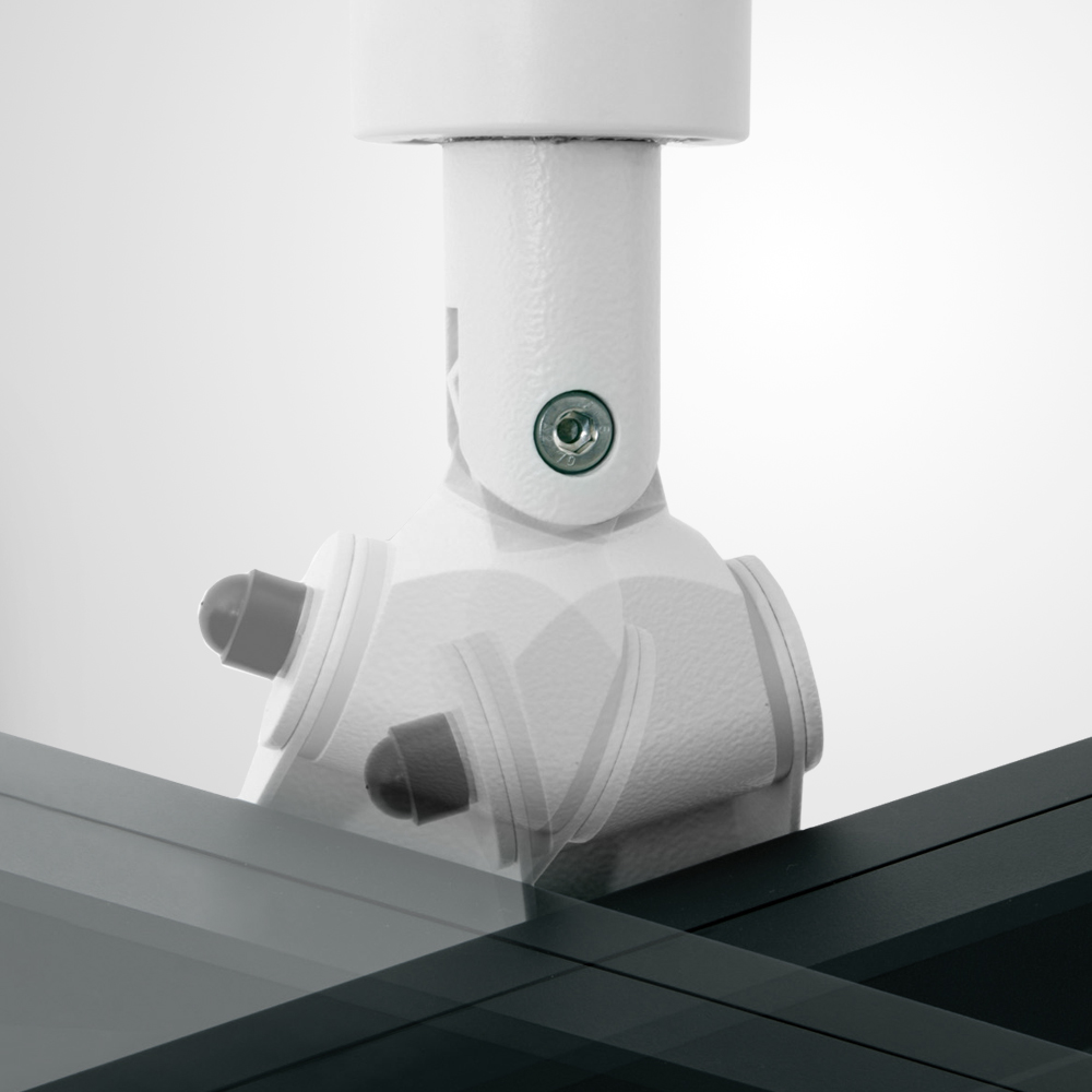 The double jointed hinge allows for a wide range of different viewing angles as well as a sideways movement in the case of a minor collision.