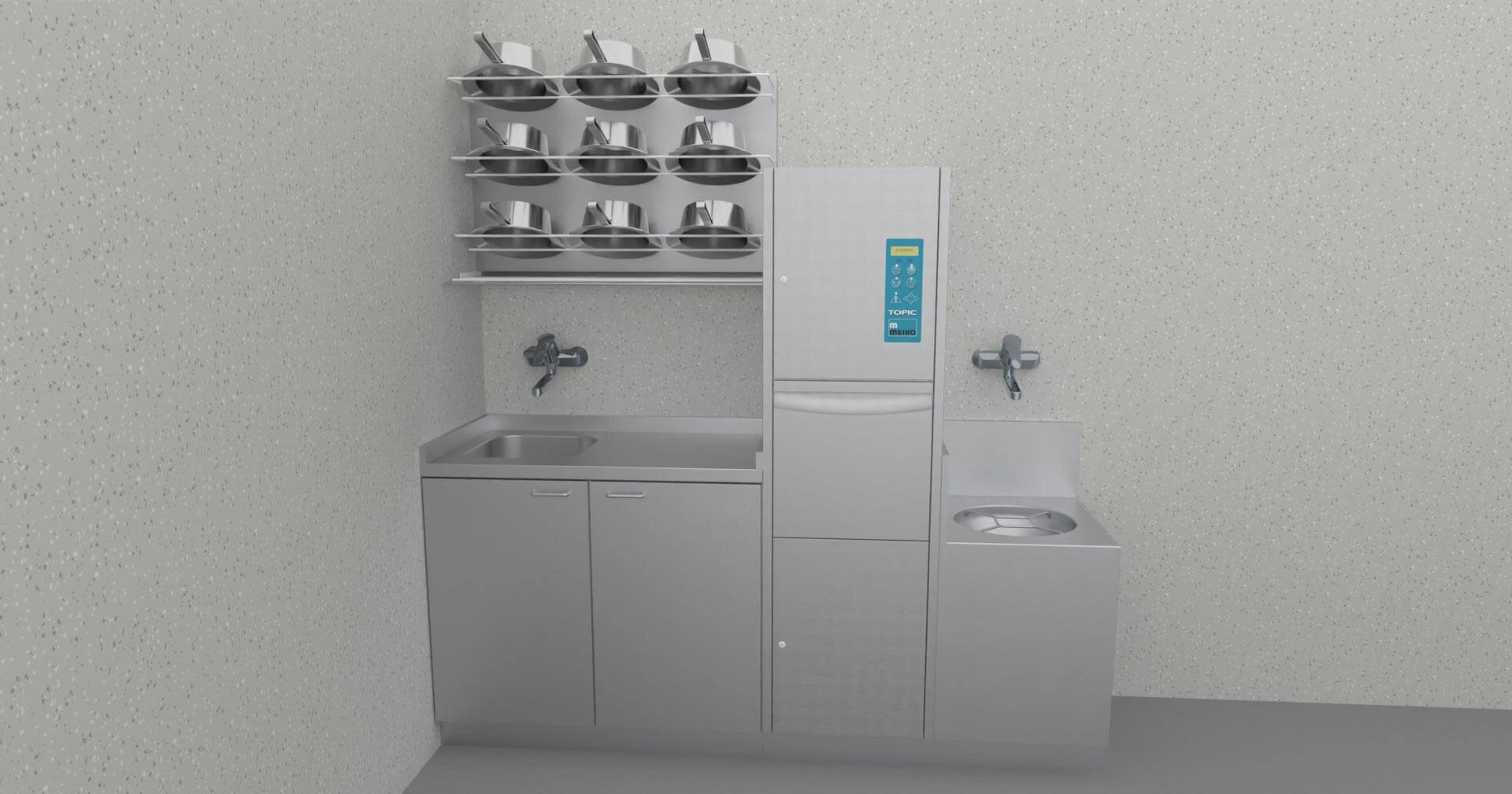 Depending on what is needed in the space, the TOPIC is available floor mounted or with ground clearance to mount on the wall or as tabletop models. We can even provide it as a fully equipped combined care unit, containing everything you may need.