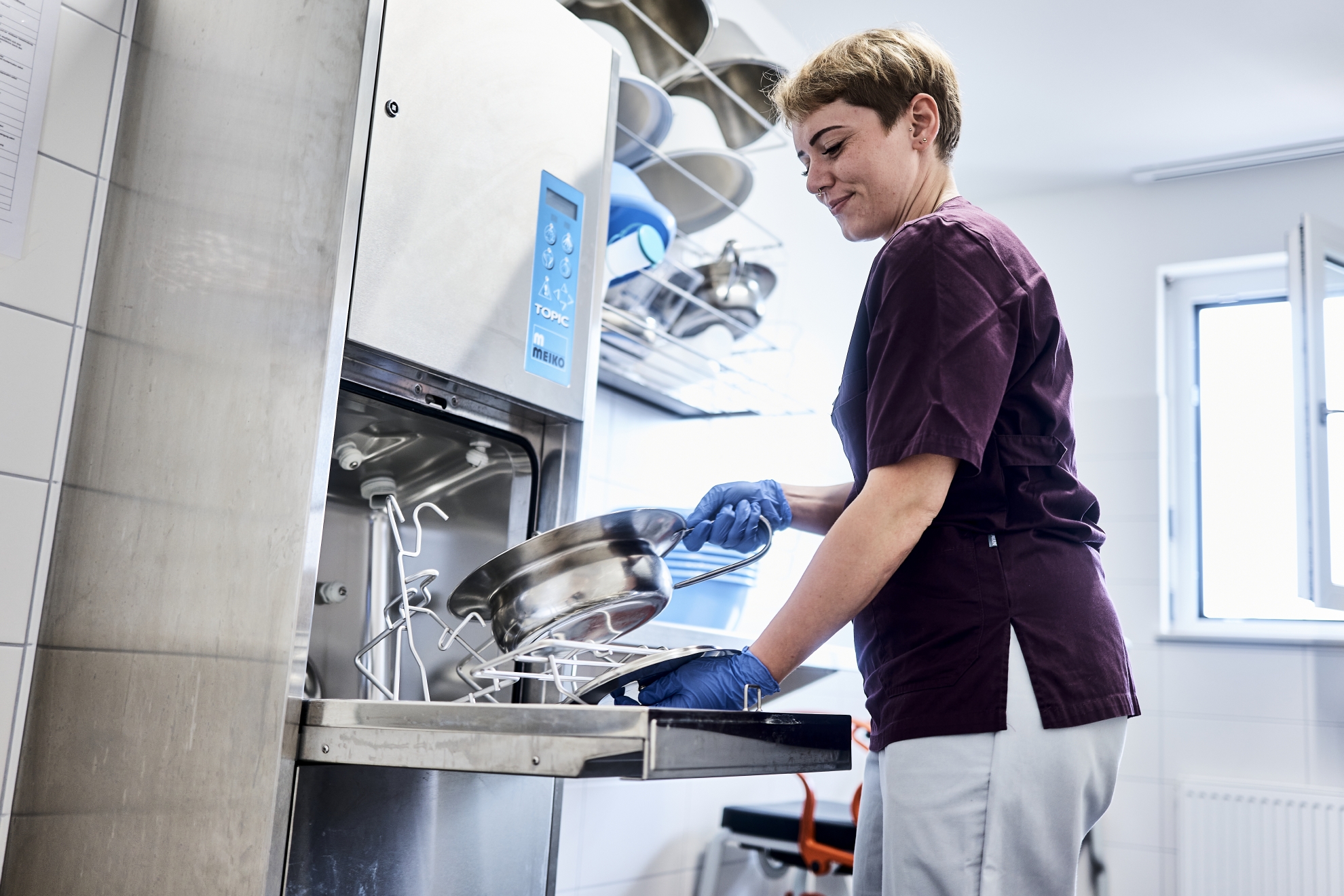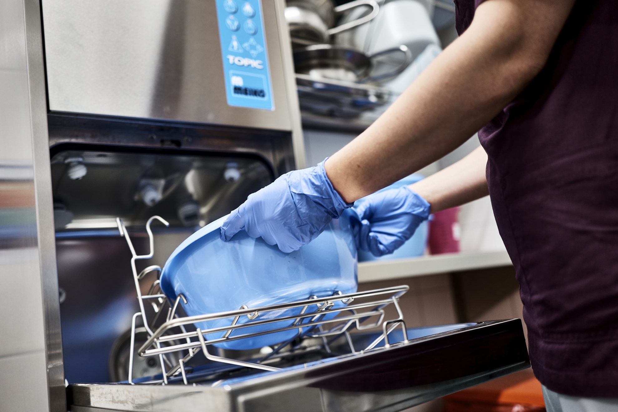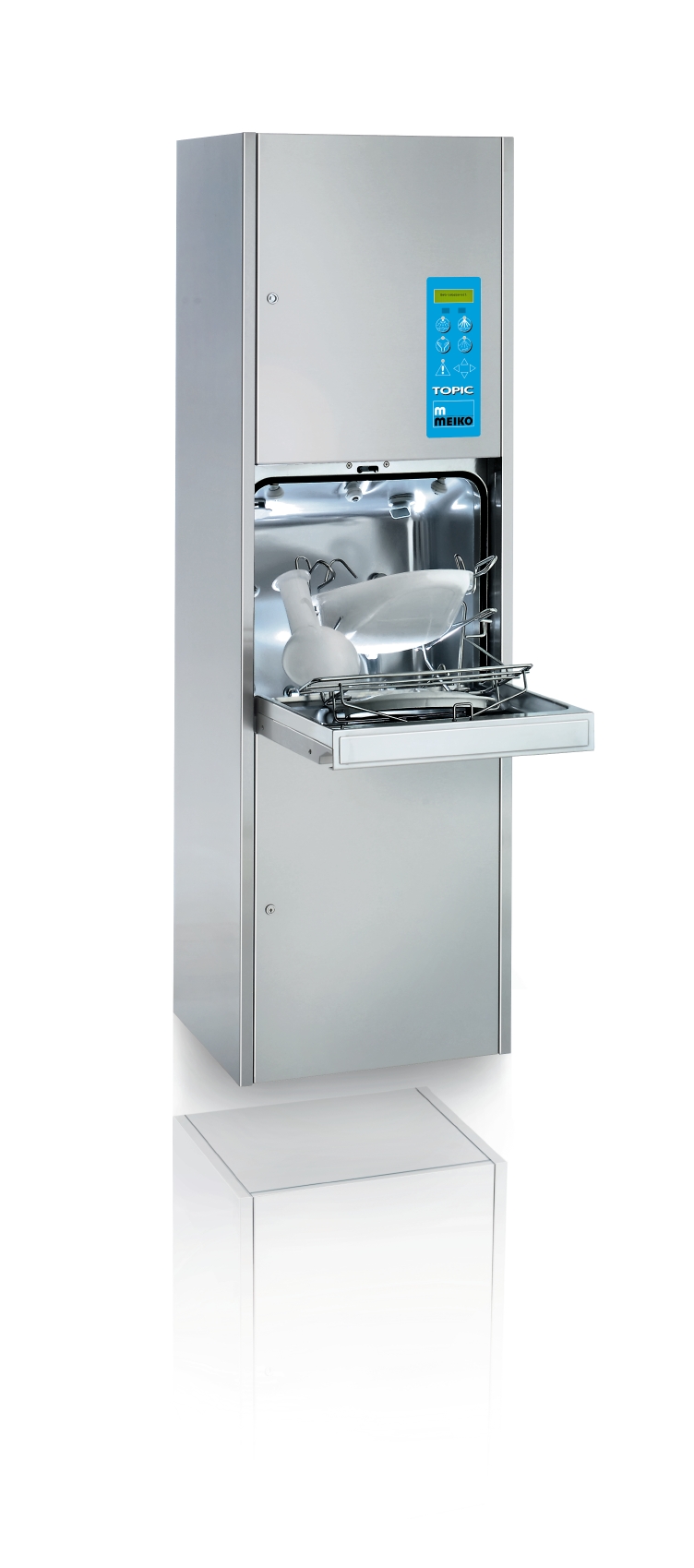 This little MEIKO washer-disinfector packs a punch in robust materials and sturdy technology: a great solution for sluice rooms. Bedpans, urine bottles, etc. are emptied, cleaned and disinfected, all inside the machine – automatically and reliably.