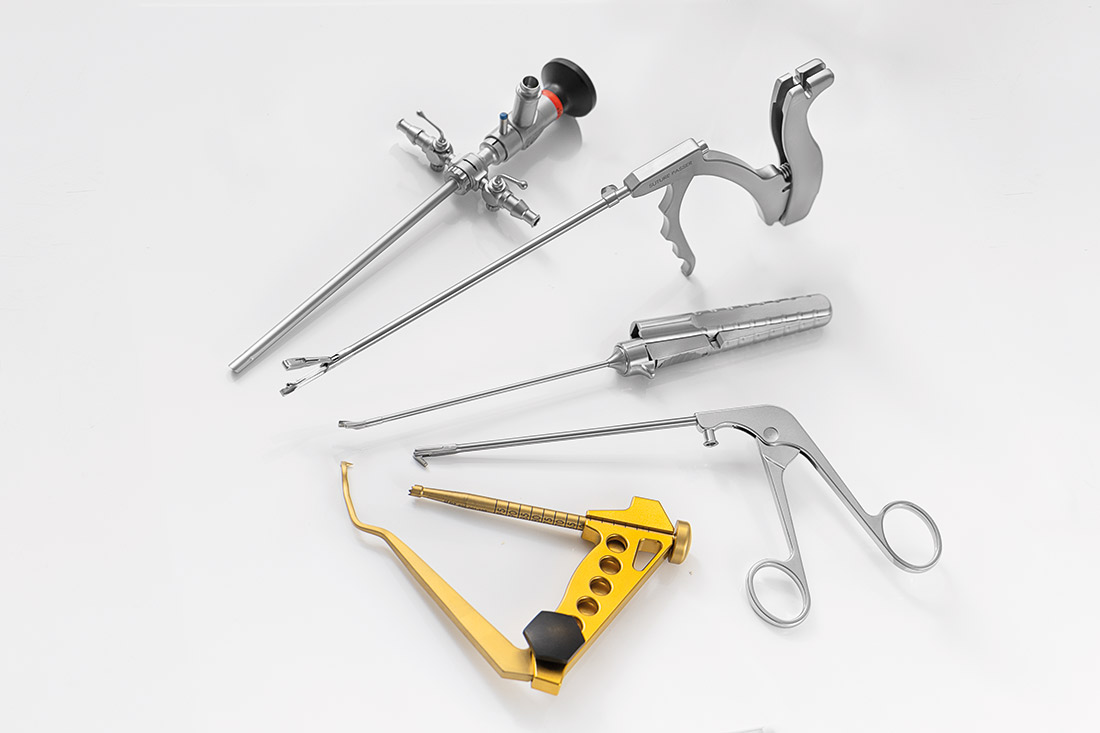 The hand instruments are the extended hand in the joint. The special sliding shaft mechanism ensures direct transmission of force from the hand to the jaw for a precise tactile feel. The pinless mechanism is very robust and thus reduces the risk of material breakage. Furthermore, this technology allows for an extremely flat design. These ensure easier access to lesions in narrow joint spaces.