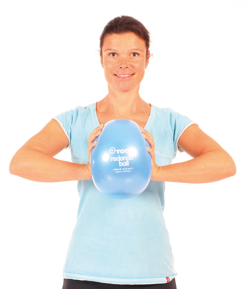 The "foldable" ball for Pilates, fitness and pelvic floor training is versatile. With little air the ball can be used as a support cushion for the back or neck. It can withstand a body weight of up to 120 kg (when exercising lying down). Jammed between the thighs, it is also used to fix and strengthen the muscles. The elastic skin also makes it ideal for gripping and catching exercises. The light and soft ball can even be used indoors when throwing. An exercise poster is included.