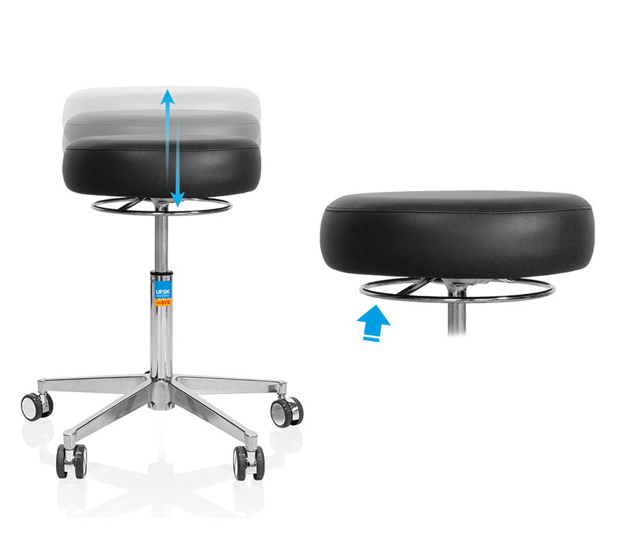 With the reliable, comfortable and flexible easyLine assistant’s chair, you create a safe and pleasant workplace for your surgical assistant. The easyLine chair with round seat is available in two versions (easyLine F and easyLine R) with different adjustment systems.